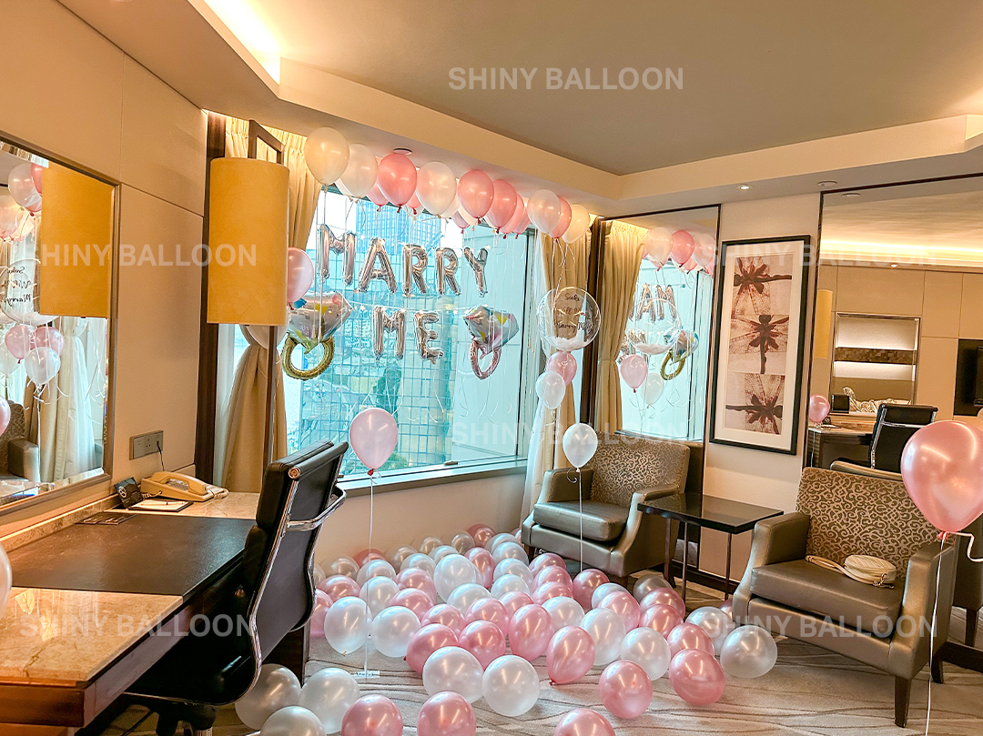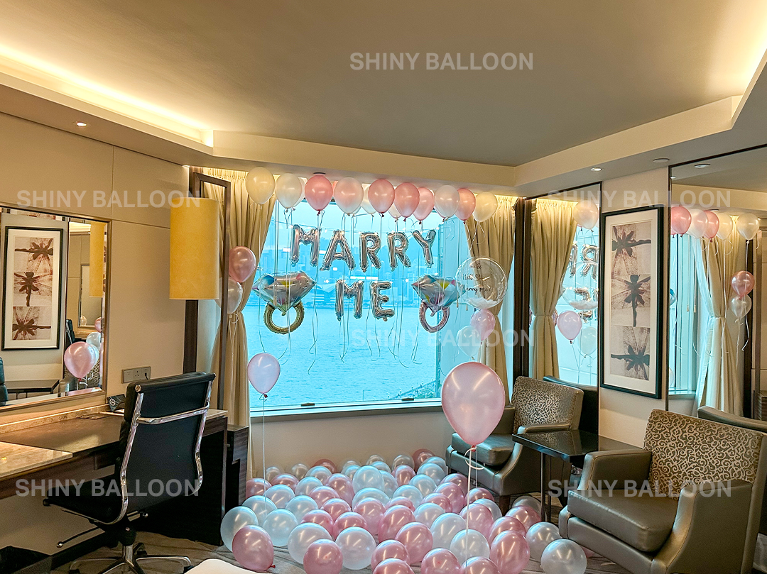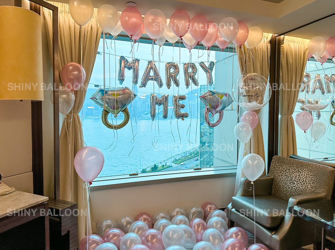 MARRY ME 鋁膜氣球💖 + 鑽石戒指鋁膜氣球💍 +心形鋁膜氣球 🤍+自訂文字羽毛水晶氣球🎈