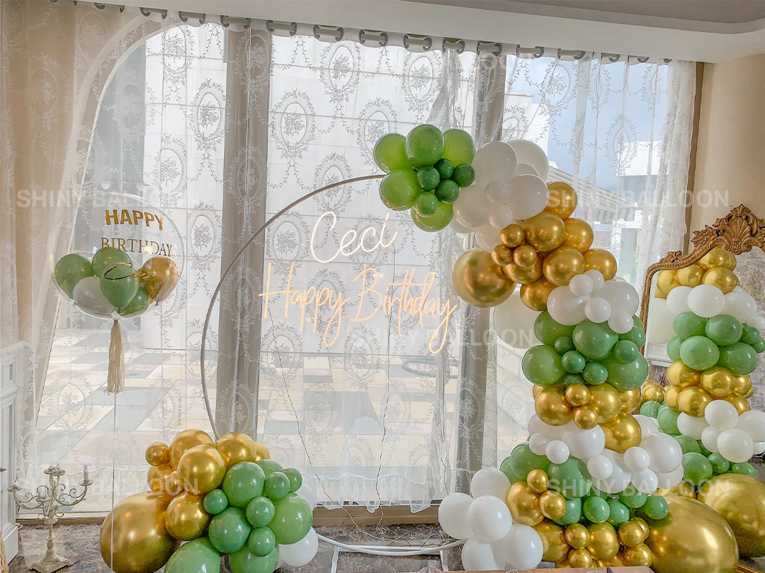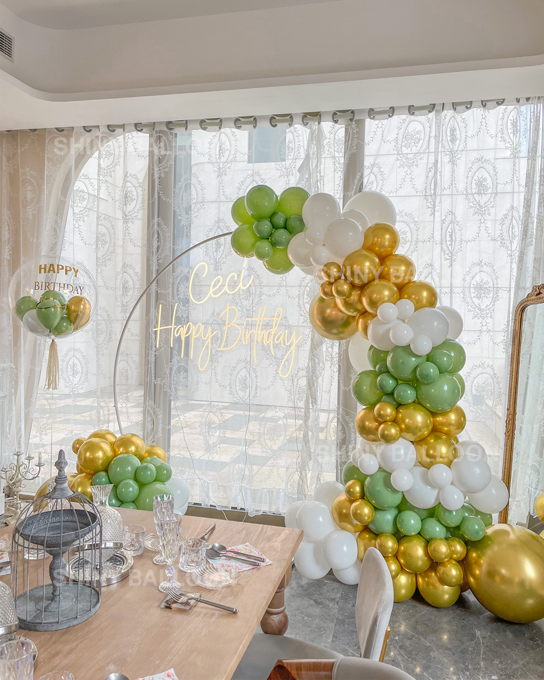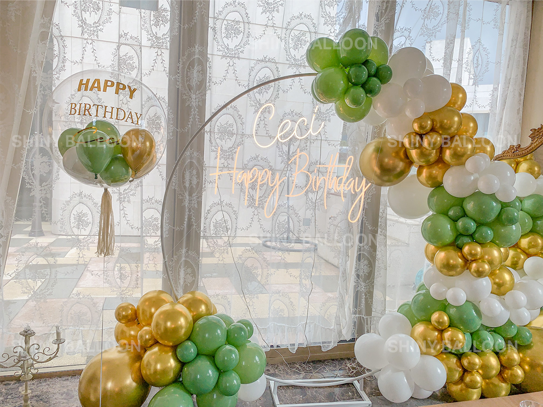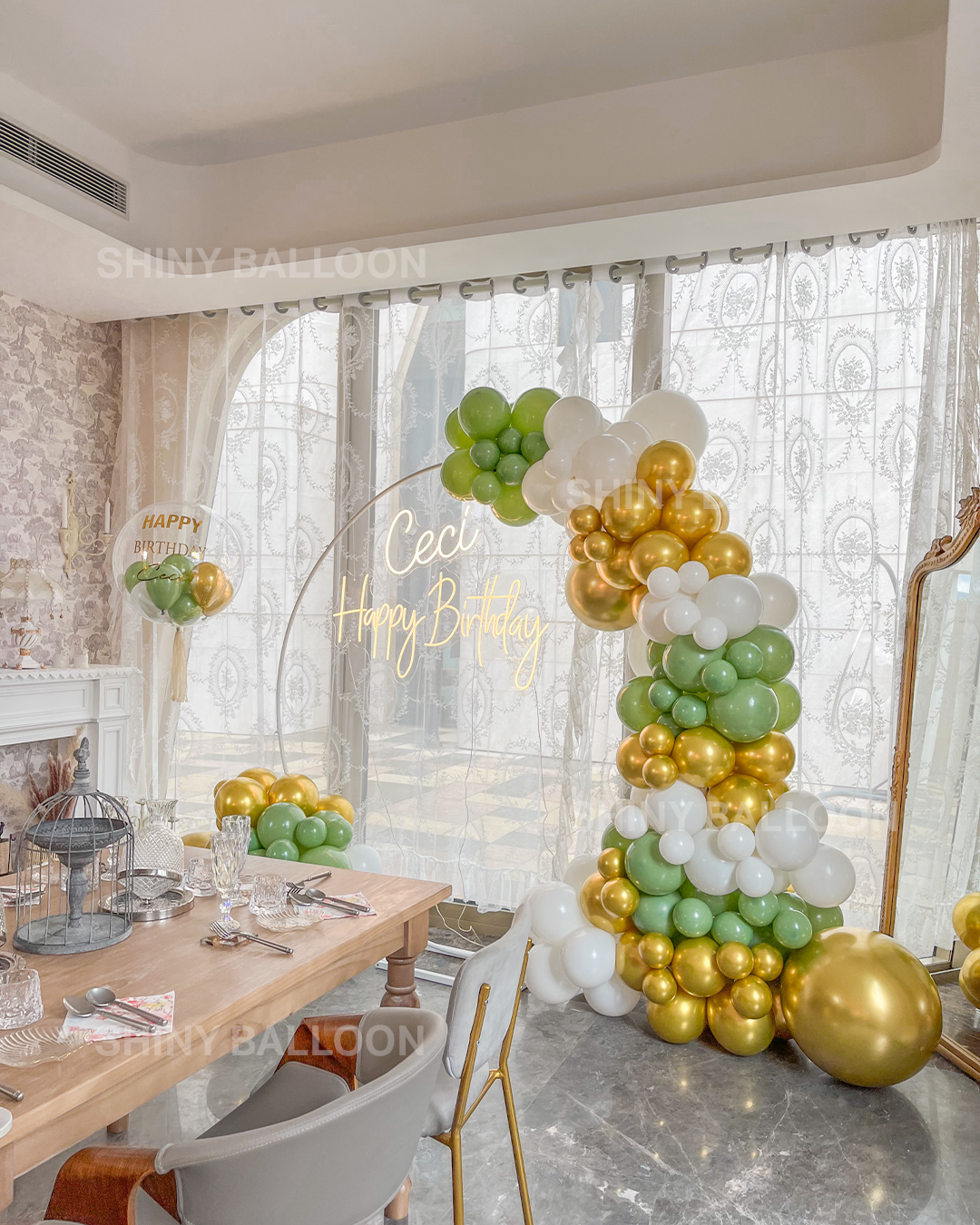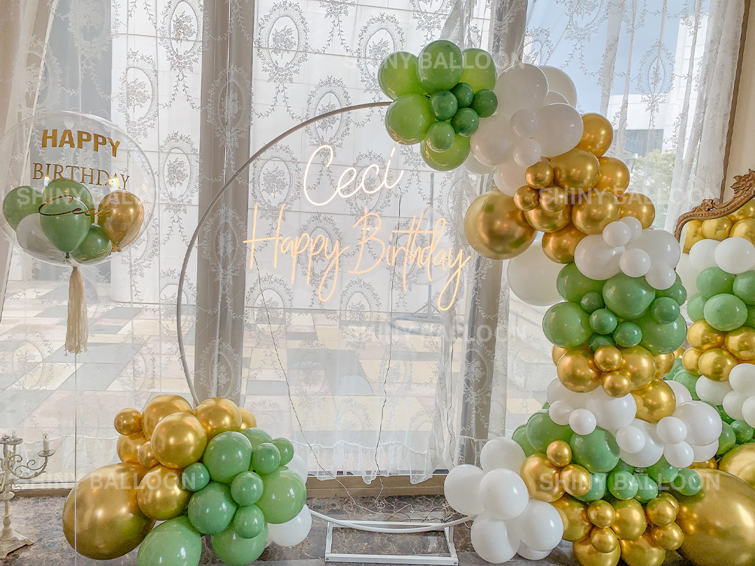 氣球鏈 (Balloon Garland) 🎈加上 Happy Birthday 霓虹燈🎊及 訂製水晶氣球
